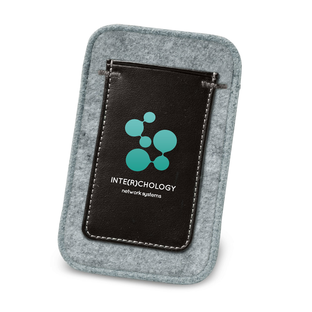 Bolsa para celular em feltro e c. sintético com bolso exterior. 90 x 142 x 5 mm | Bolso: 62 x 102 mm.