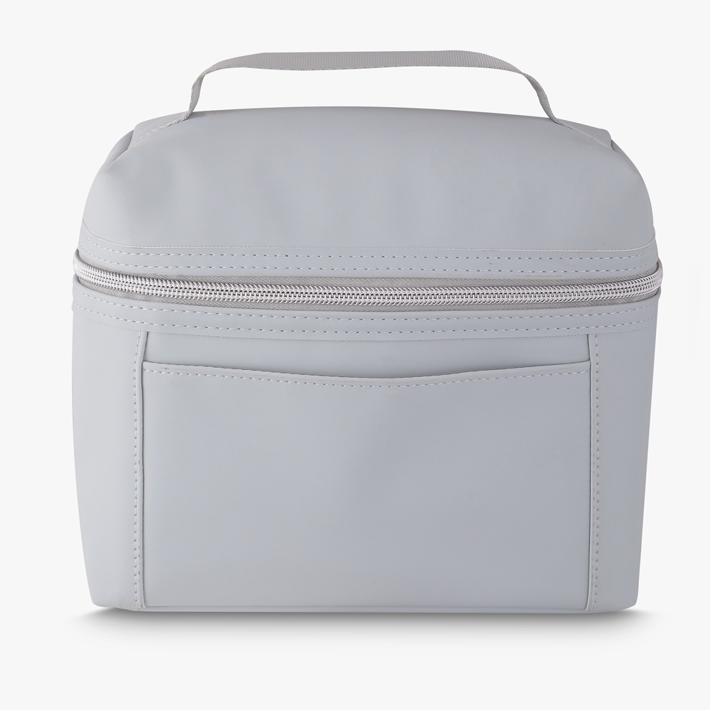 Bolsa térmica confeccionada em PU com capacidade de até 4 litros e fechamento em zíper. Possui revestimento interno térmico em que ajuda a manter a temperatura de alimentos e bebidas conservada por mais tempo. Apresenta bolso frontal e alça de mão para transporte.