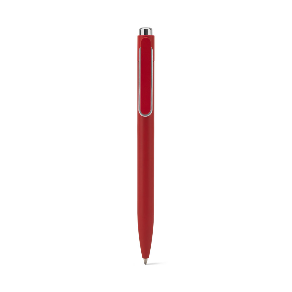 Esferográfica em alumínio 94% reciclado, com clipe em formato inovador que se evidência pela sua singularidade e elegância. Escrita em azul até 1,5 km. ø10 x 140 mm.