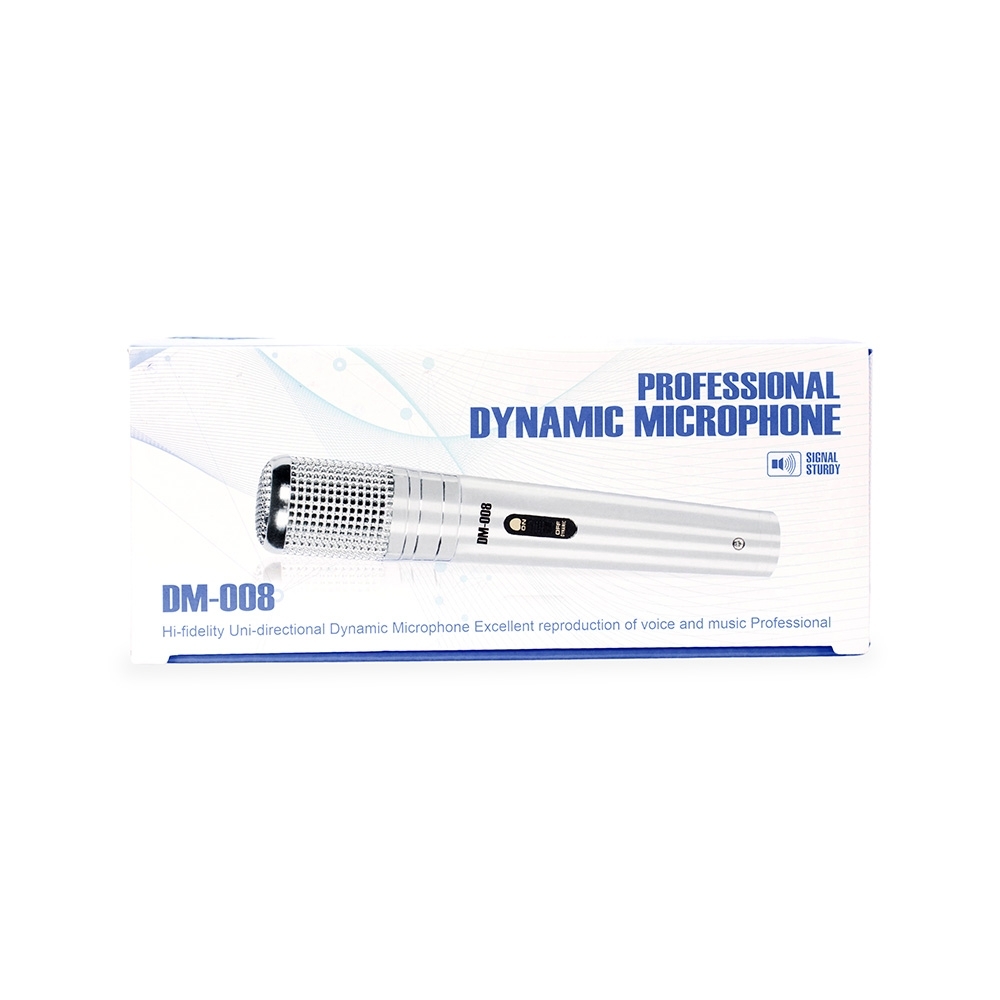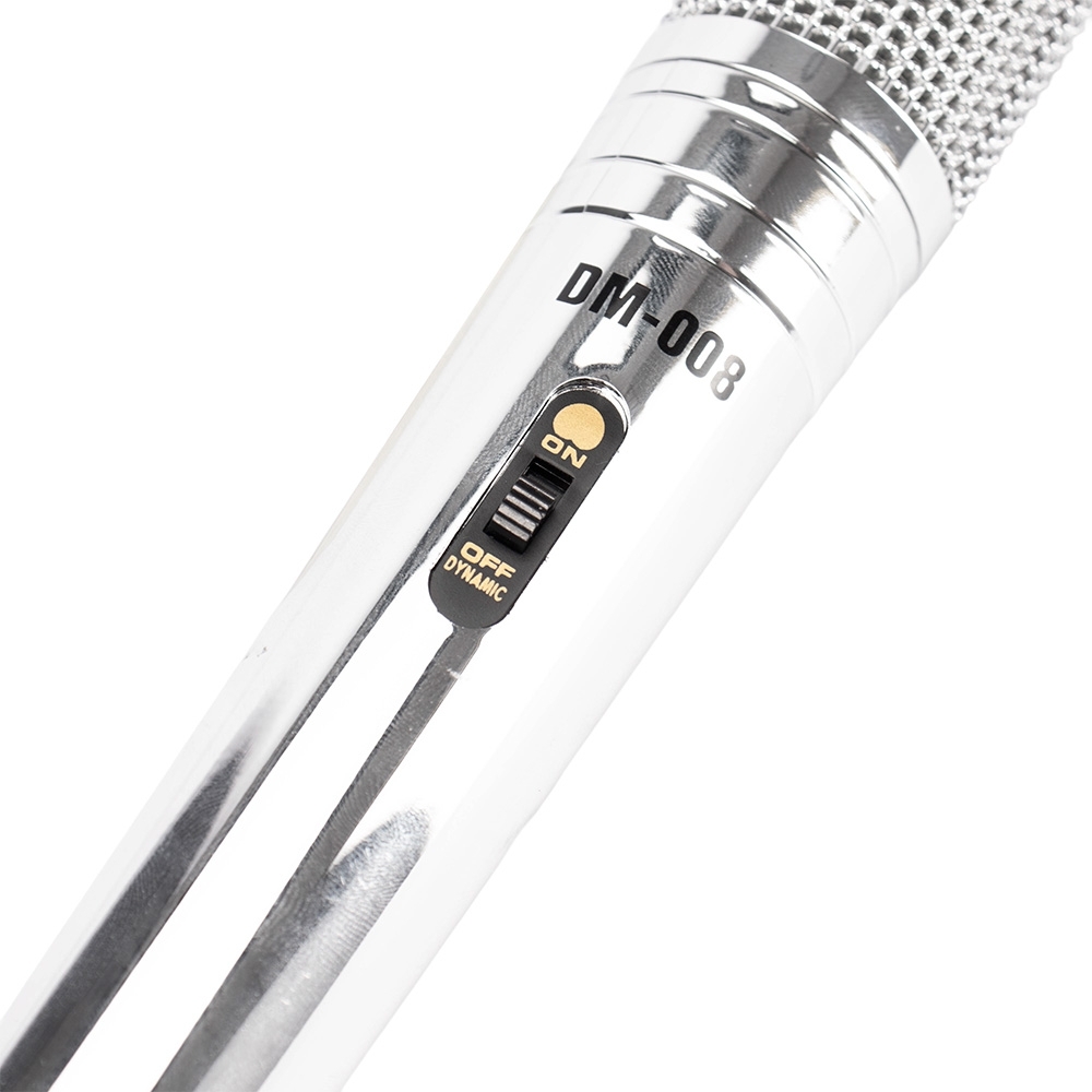 Microfone dinâmico unidirecional com estrutura leve em alumínio e malha de proteção metálica. Conta com chave liga/desliga na parte frontal. Acompanha cabo XLR-P10 com 4 metros de comprimento.