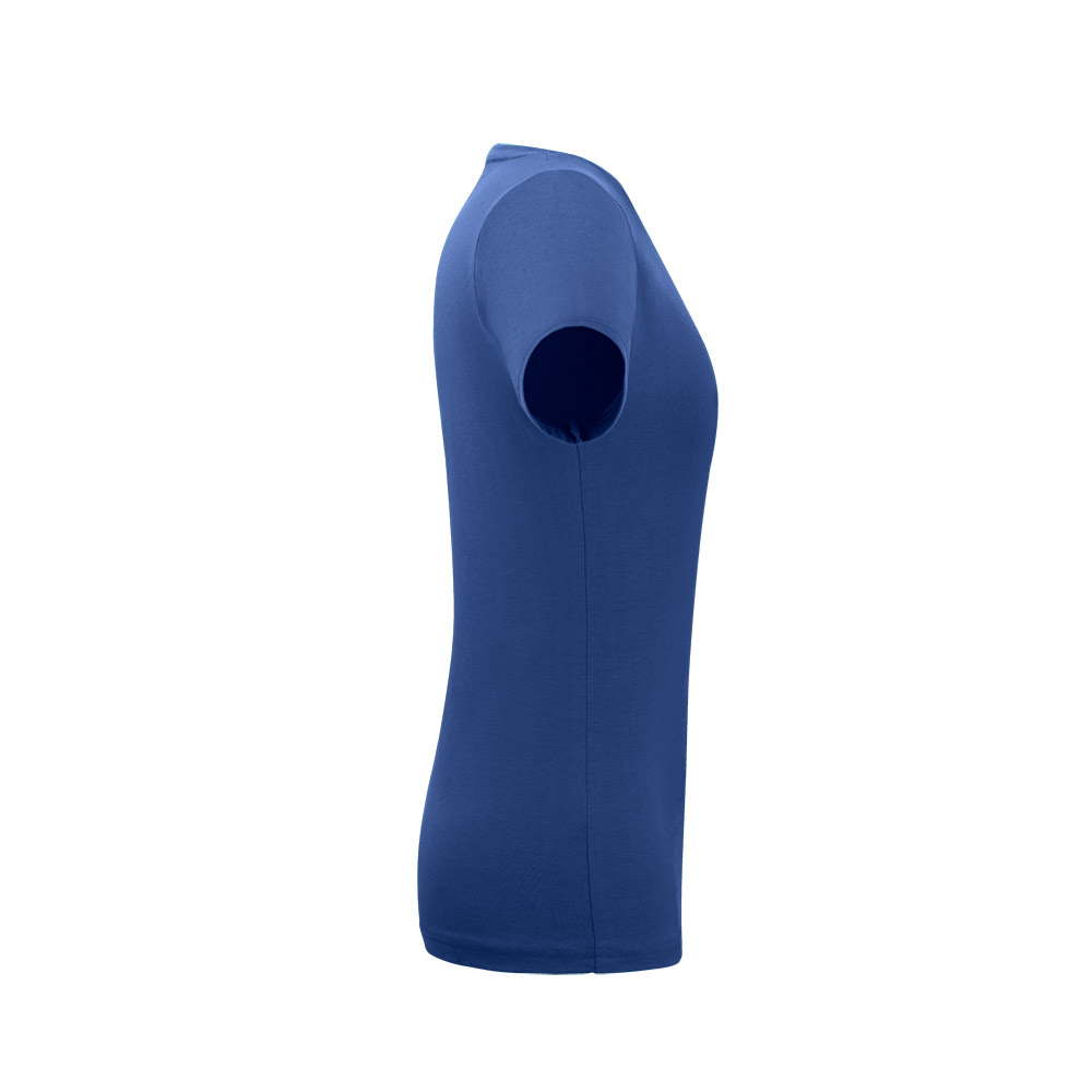 Camiseta feminina de corte cinturado em malha 100% algodão (165 g/m2) com fio 30/1 misto. Com gola em ribana 1×1 com fita de reforço e com costura dupla nas mangas, barra de fundo e laterais. Produto contém certificação ABVTEX . Tamanhos: P, M, G, GG.