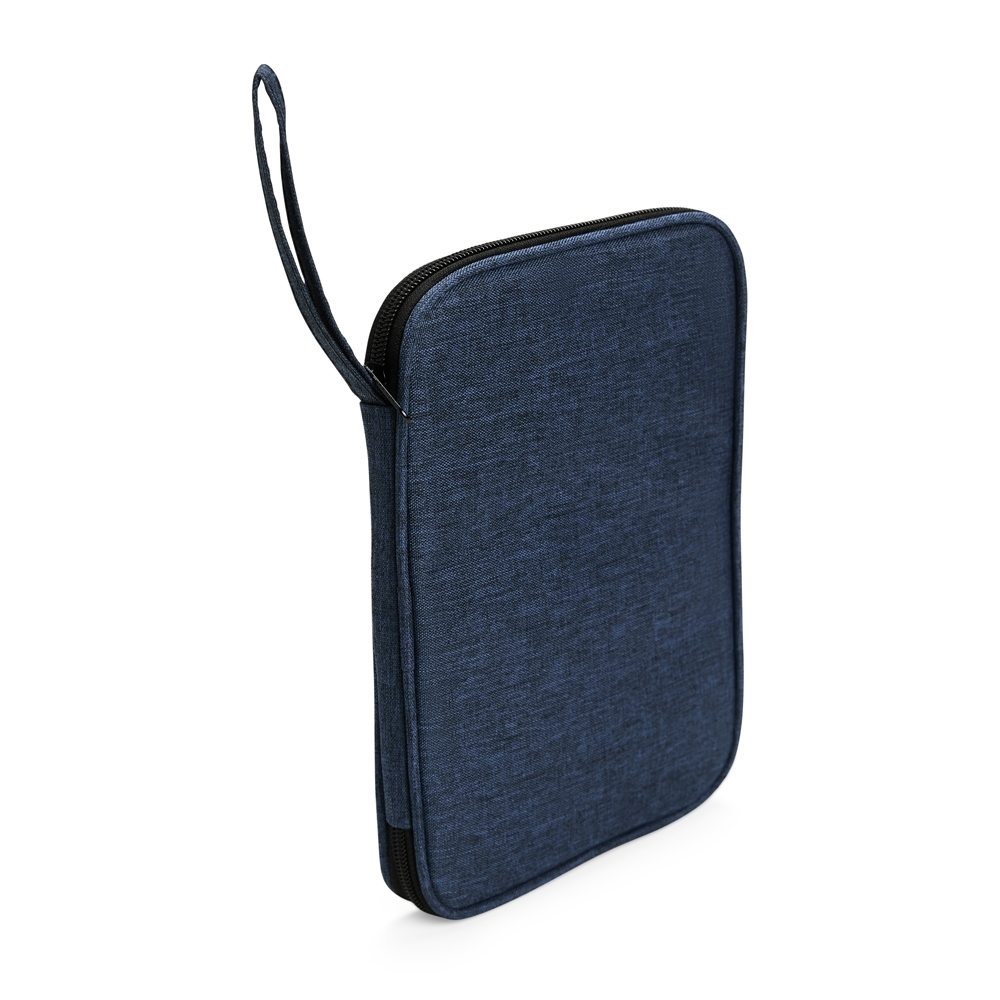 Estojo confeccionado em poliéster resistente à água. Conta com bolso interno em tela de nylon e fechamento em zíper e divisórias em diferentes tamanhos em elástico. Possui alça de mão para transporte.