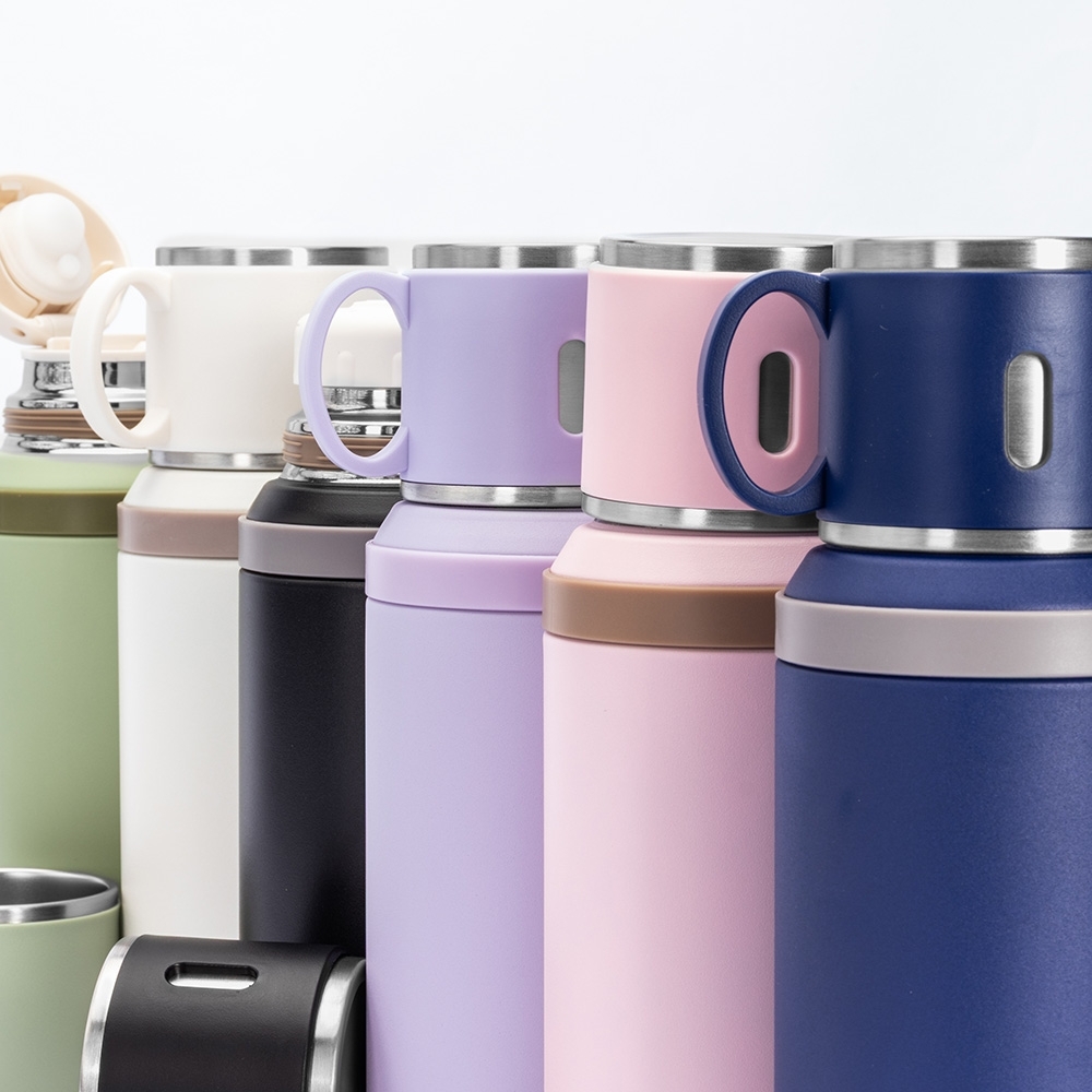 Garrafa térmica em inox com pintura eletrostática e capacidade de até 600ml. Possui estrutura de parede dupla e tampa interna rosqueável com anel de vedação, abertura do bocal por botão de acionamento e infusor. Conta ainda com tampa externa em formato de caneca e alça emborrachada para transporte.
