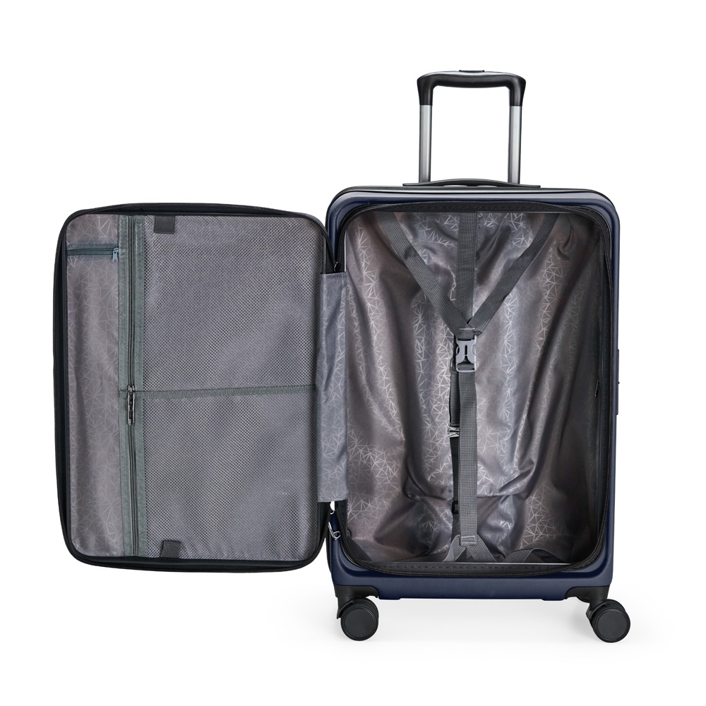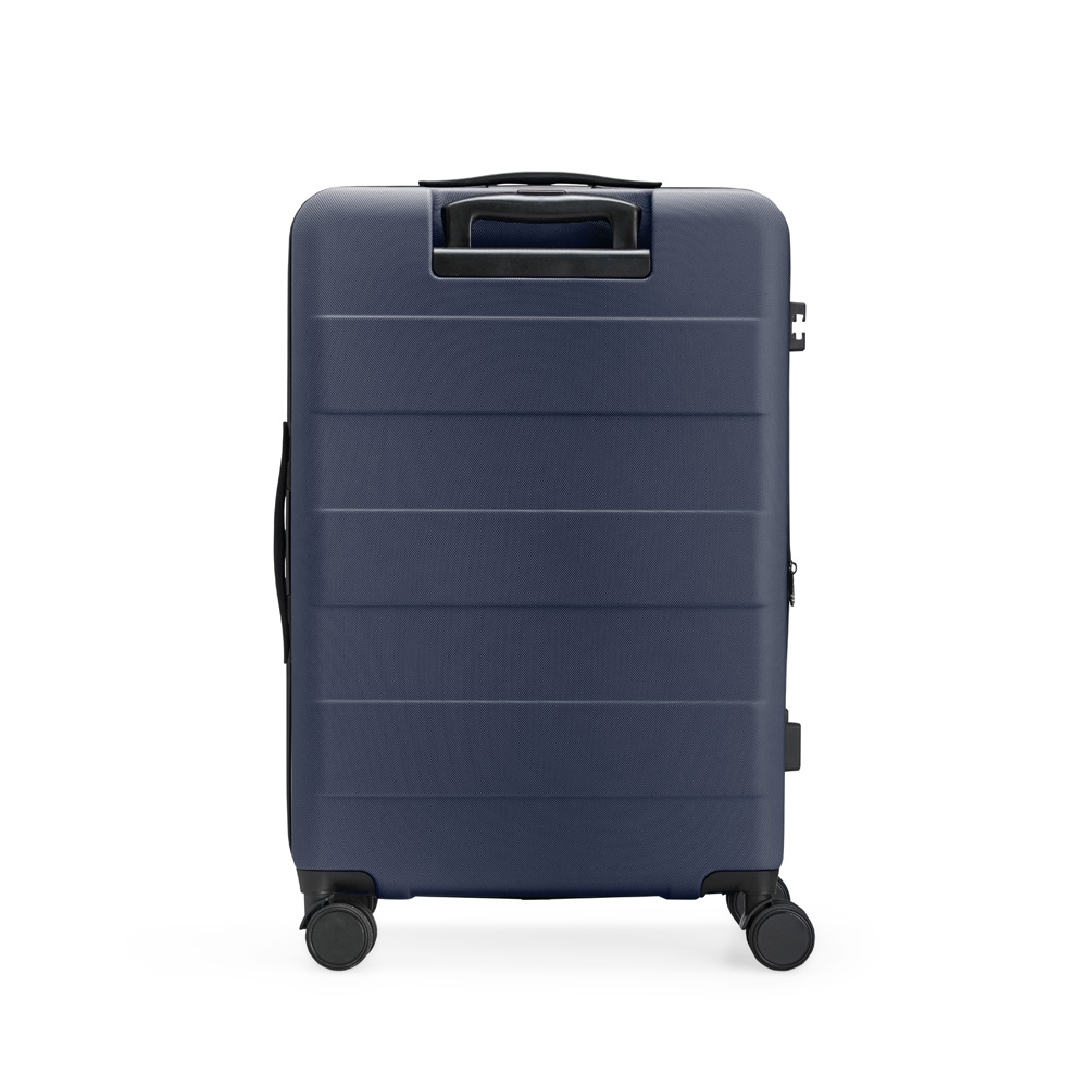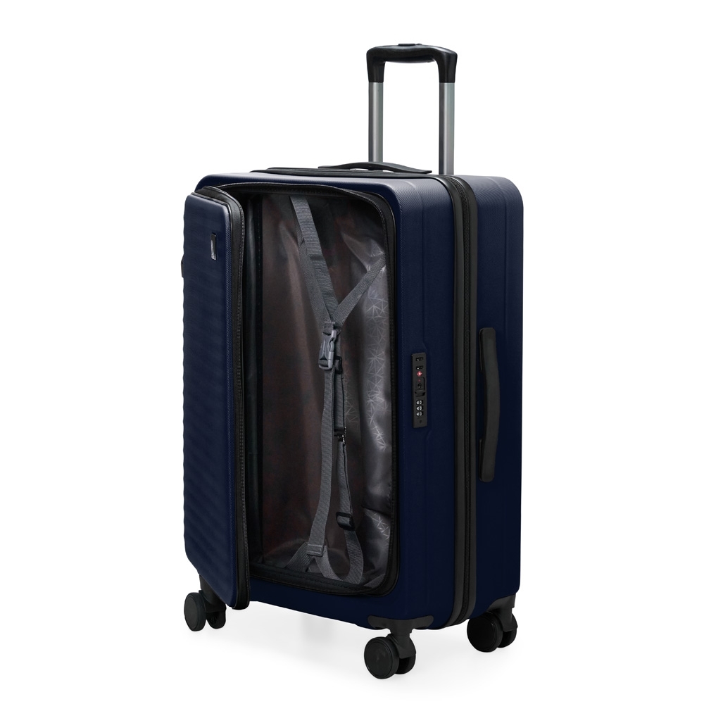 Mala de 49 litros, resistente e funcional! Produzida em plástico ABS, conta com cadeado numérico TSA embutido para mais segurança. Seu design inteligente traz abertura frontal com divisórias internas de zíperes e cinta compressora para roupas. Precisa de mais espaço? O zíper externo expansível se encarrega de ampliar a capacidade da mala. Para facilitar o transporte, possui puxador retrátil de 3 estágios, duas alças de mão, apoios e ganchos laterais e rodinhas 360º, proporcionando mobilidade total. Acompanha plaquinha metálica grafite personalizável.